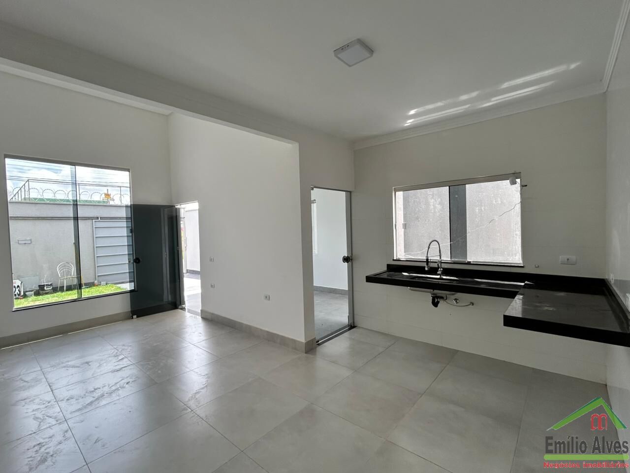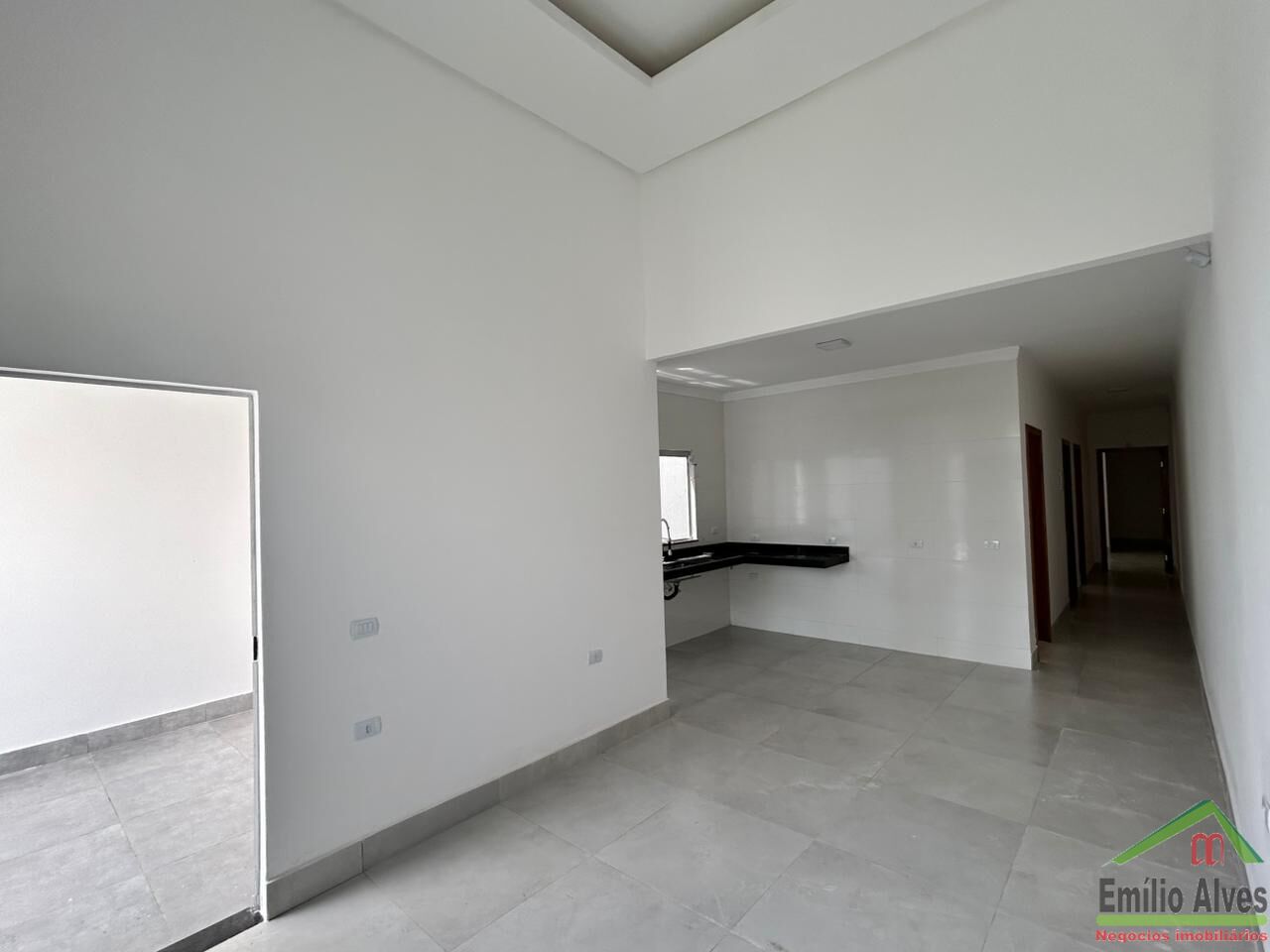 3 quartos sendo 1 suíte com closet | Sala com pé direito elevado e rebaixamento em sanca | Cozinha | Banheiro social | Garagem coberta | Lavanderia